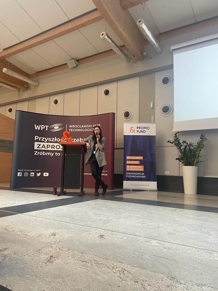 we Wrocławskim Parku Technologicznym. Celem konferencji było stworzenie możliwości wymiany doświadczeń, inspiracji i edukacji, a tym samym zwiększenie skuteczności działania organizacji pozarządowych w pozyskiwaniu środków oraz promocji.